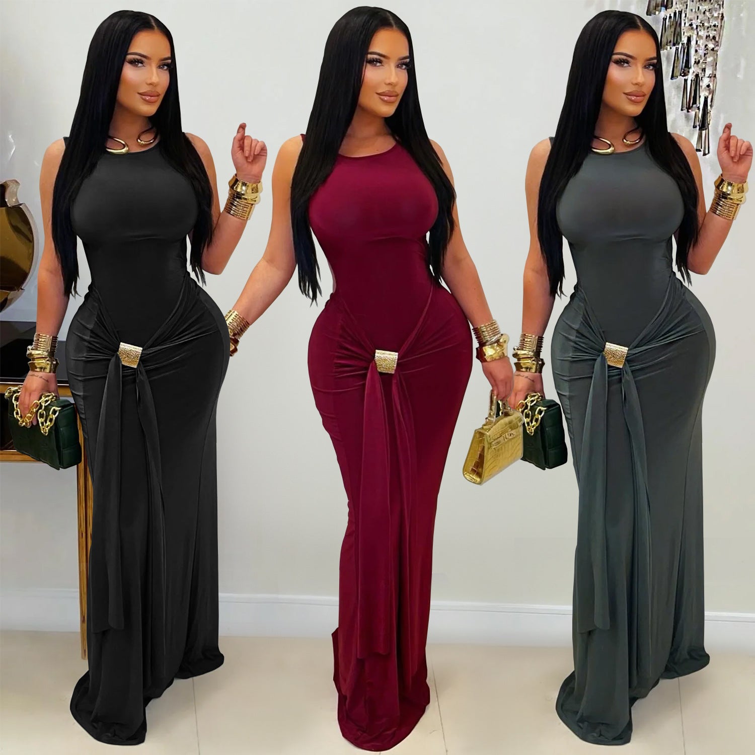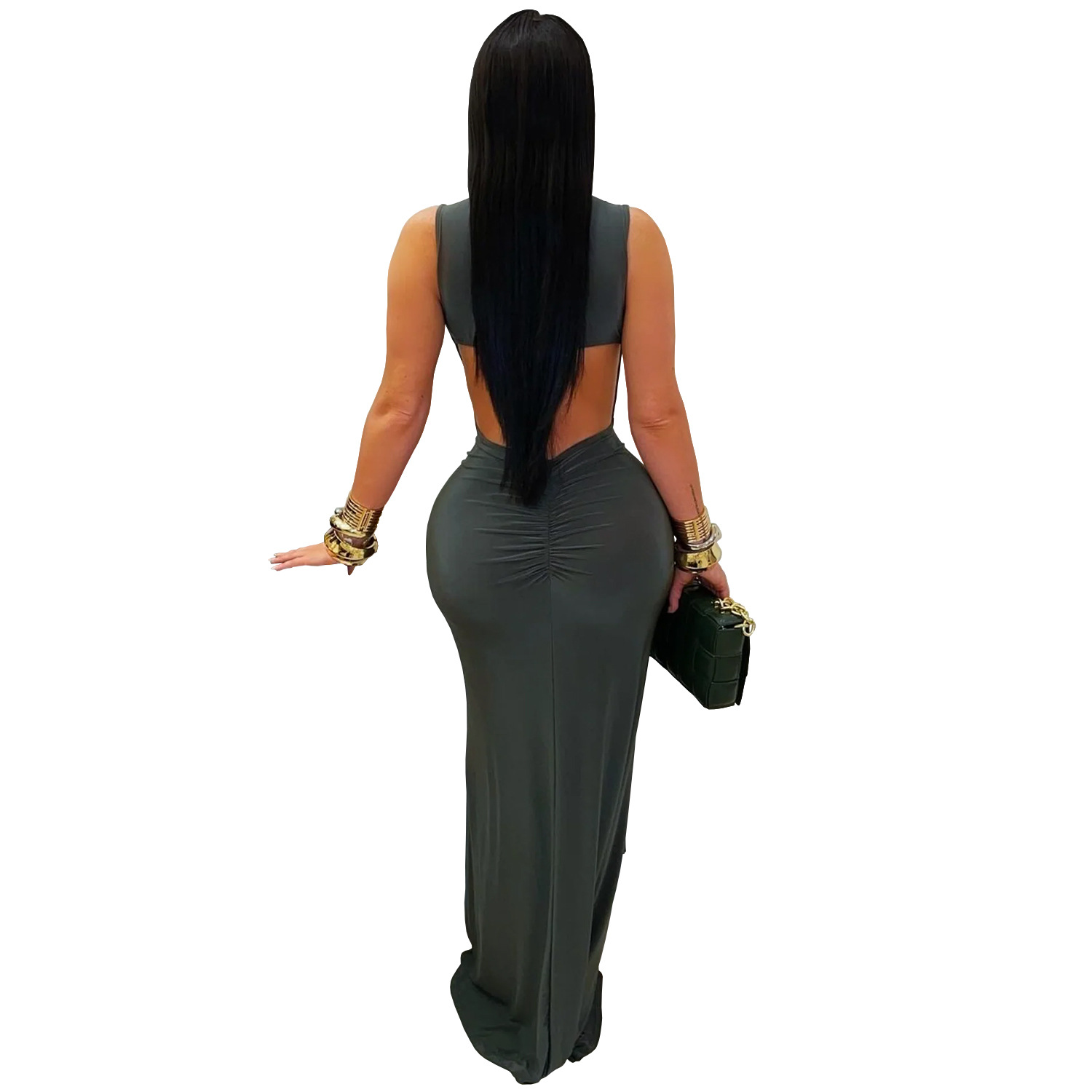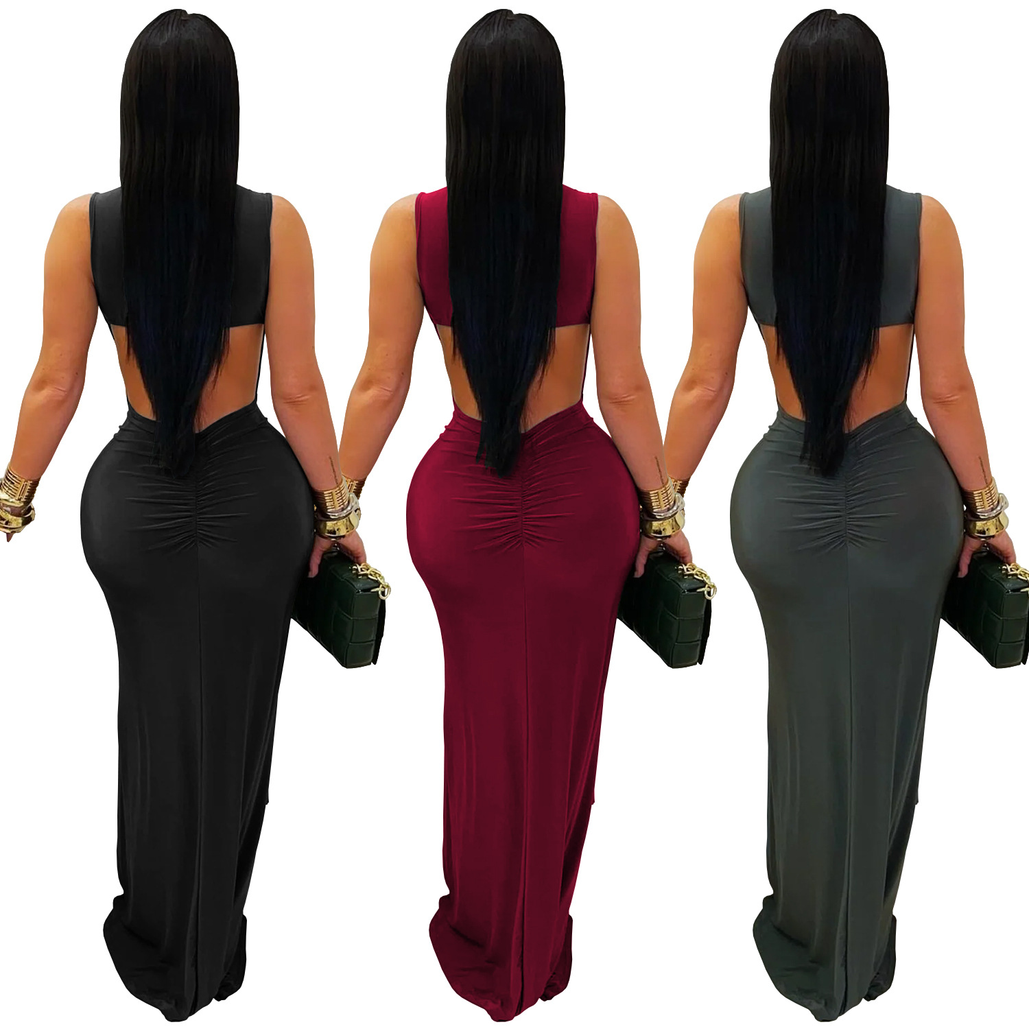 Stylish Womens Solid-Color Figure-Hugging Backless Dress